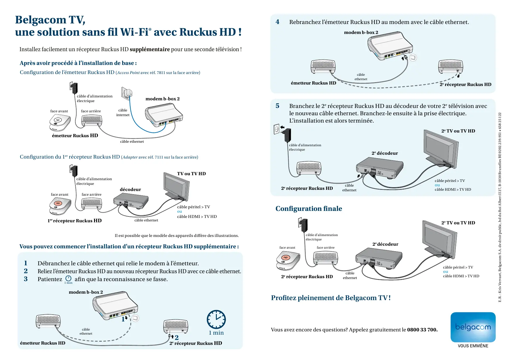1 min 2e récepteur Ruckus HD Vous avez encore des questions? Appelez gratuitement le 0800 33 700.