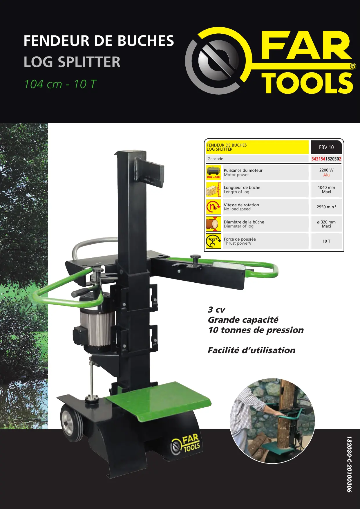 FBV 10 - Fendeur de bûches FARTOOLS - Notice d'utilisation et mode d'emploi gratuit