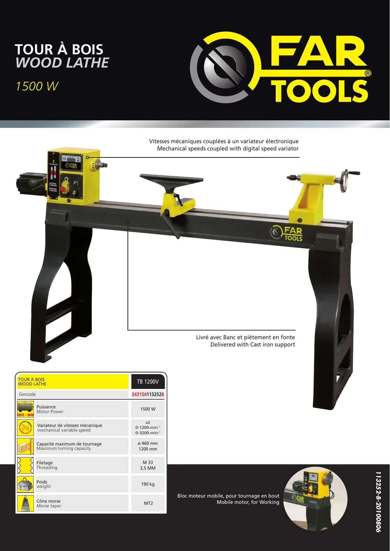 TB 1200 V - Tour à bois FARTOOLS - Notice d'utilisation et mode d'emploi gratuit