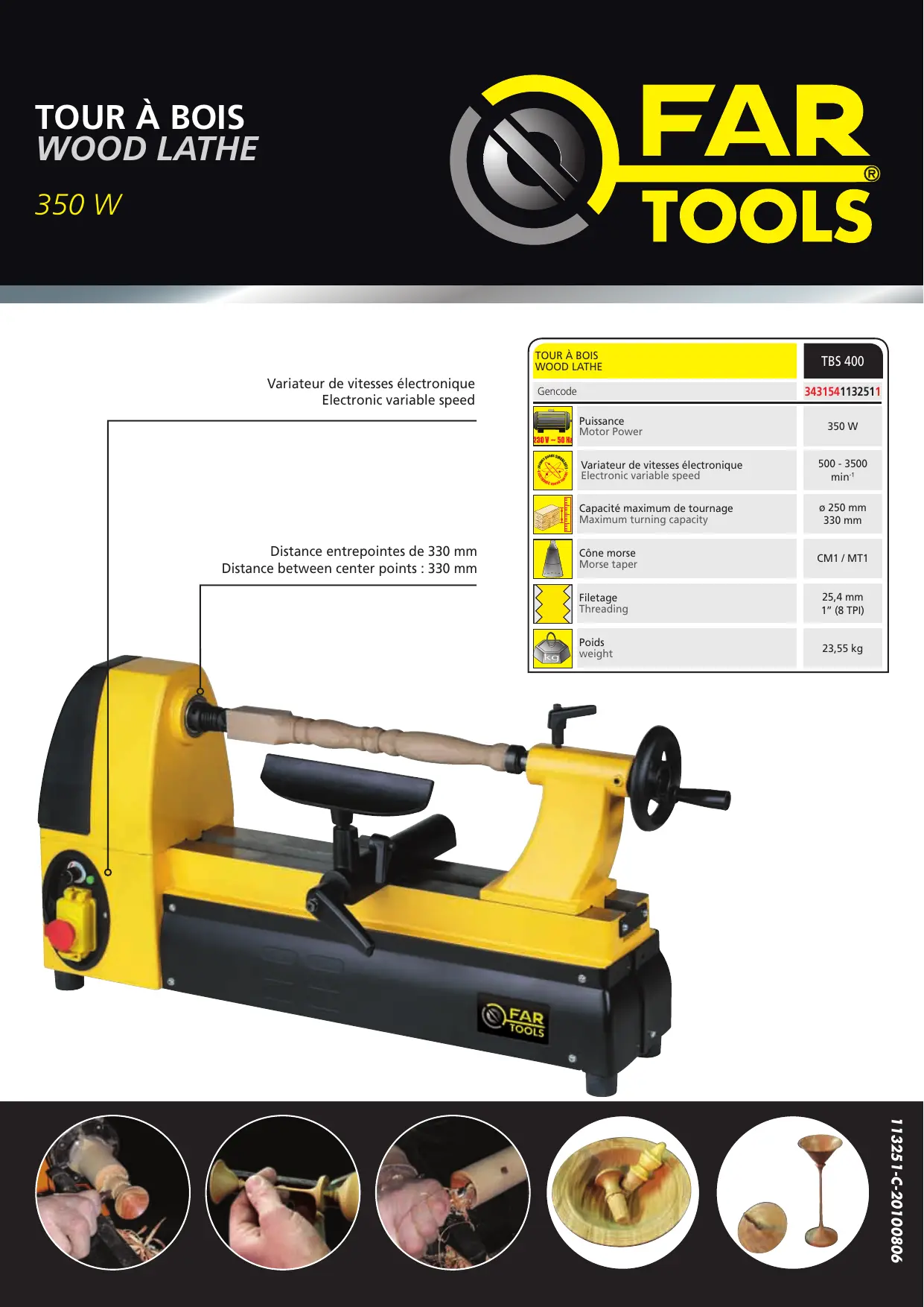 TB S400 - Tour à bois FARTOOLS - Notice d'utilisation et mode d'emploi gratuit