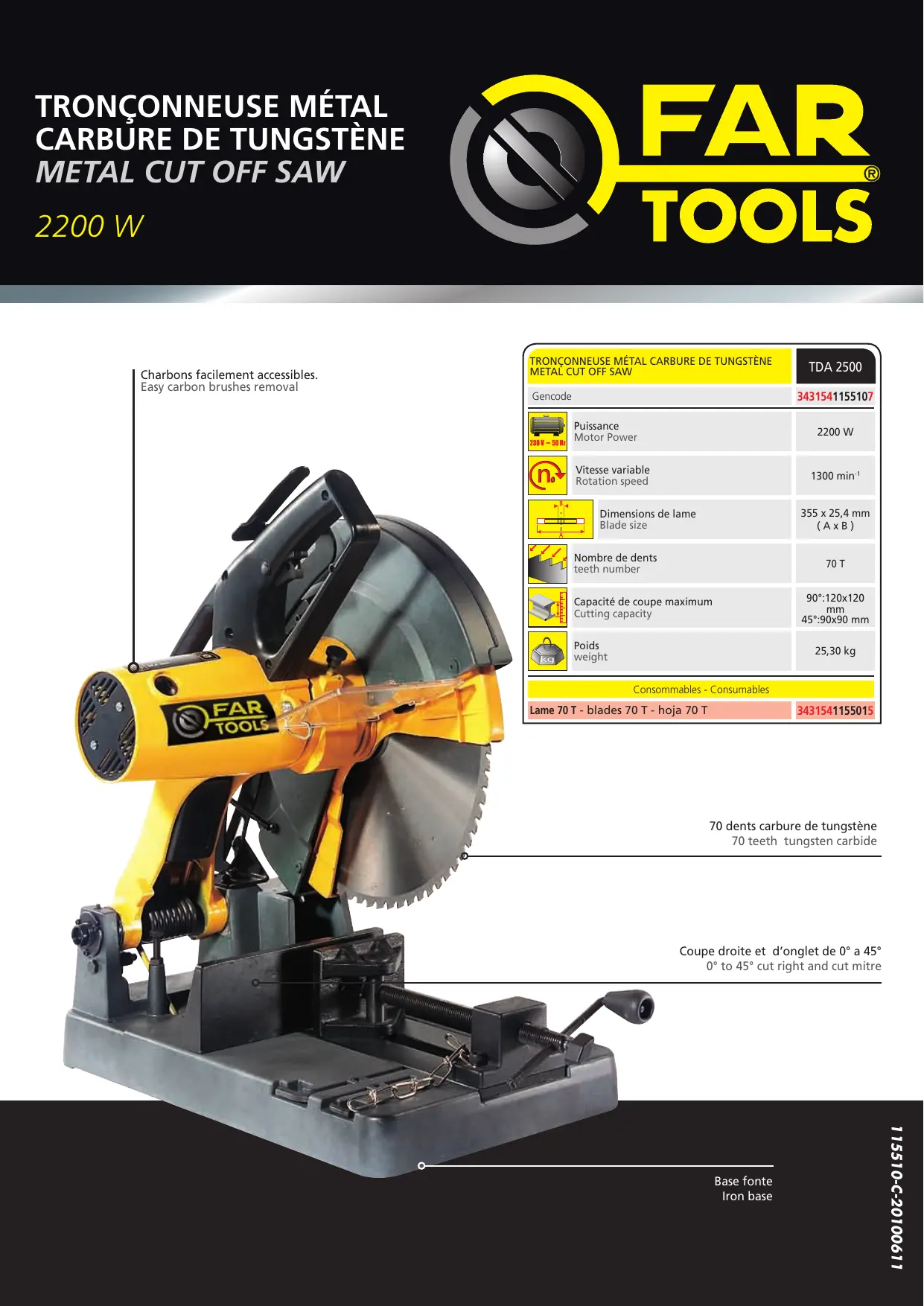 | Consommables | Lame carbure 70 dents |
