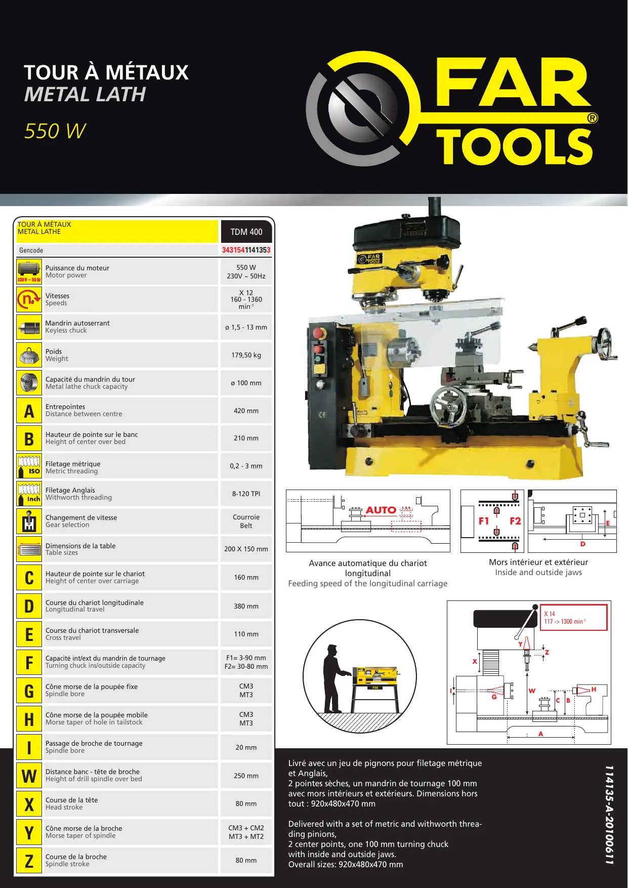 TDM 400 - Tour à métaux FARTOOLS - Notice d'utilisation et mode d'emploi gratuit