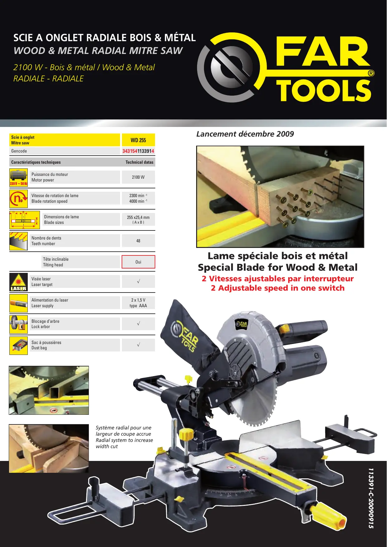 Système radial pour une largeur de coupe accrue Radial system to increase width cut 113391-C-20090915 113391-Fiche-B-20090126 Caractéristiques techniques WD 255