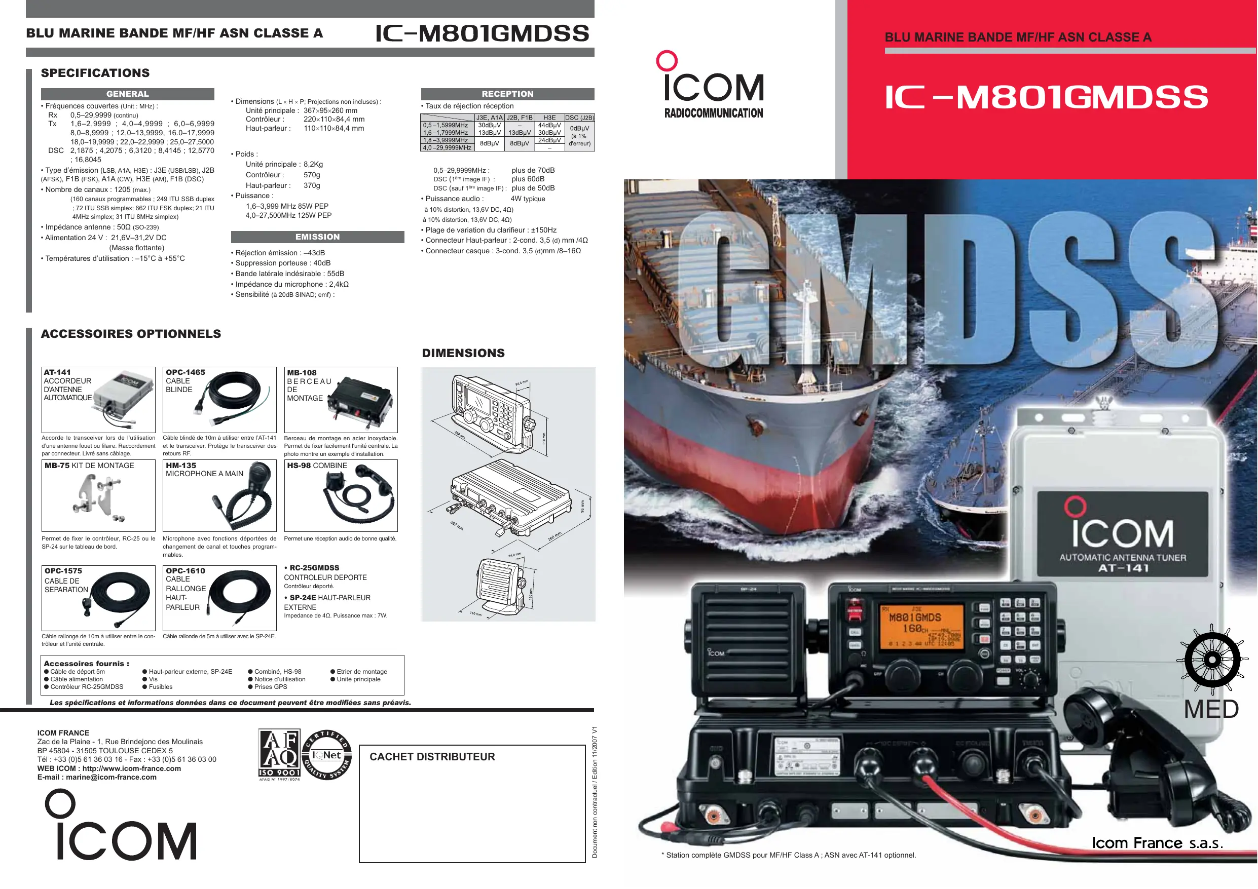 * Station complète GMDSS pour MF/HF Class A ; ASN avec AT-141 optionnel.