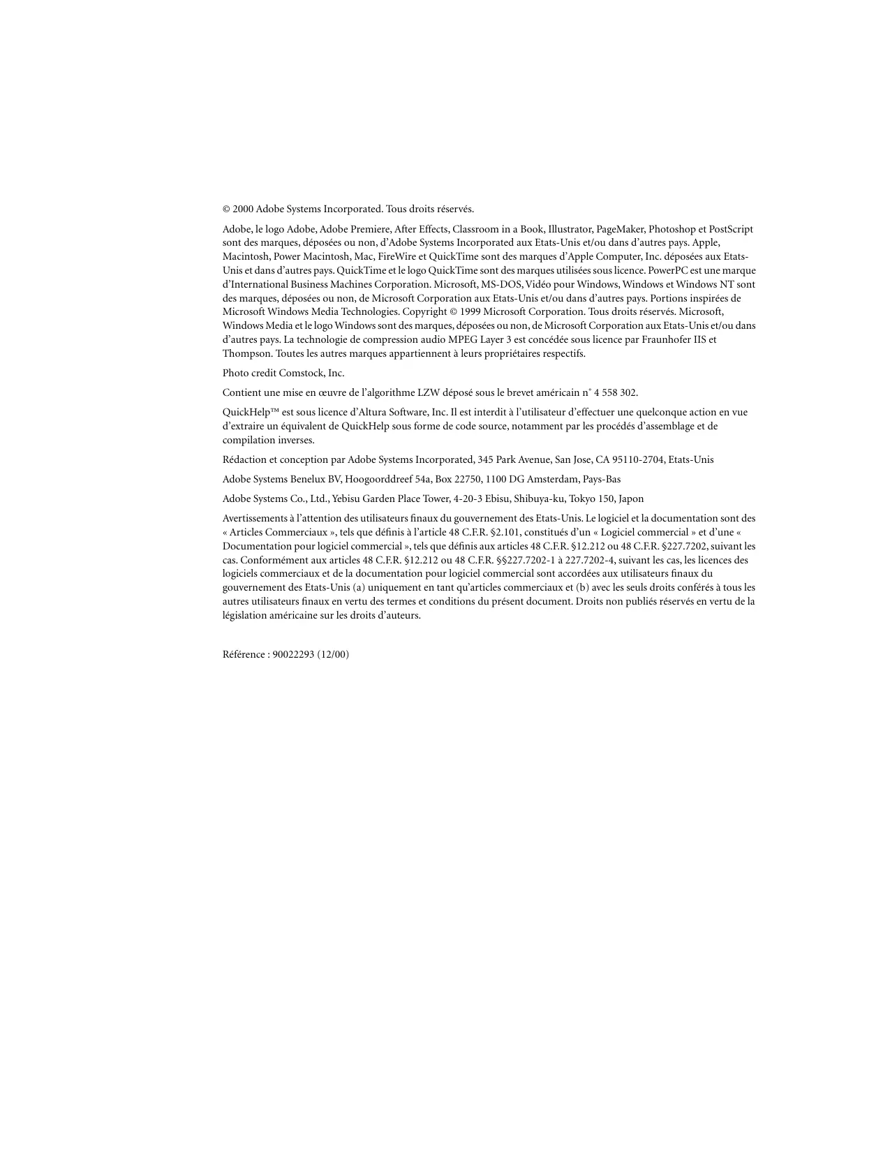© 2000 Adobe Systems Incorporated, Tous droits réservés