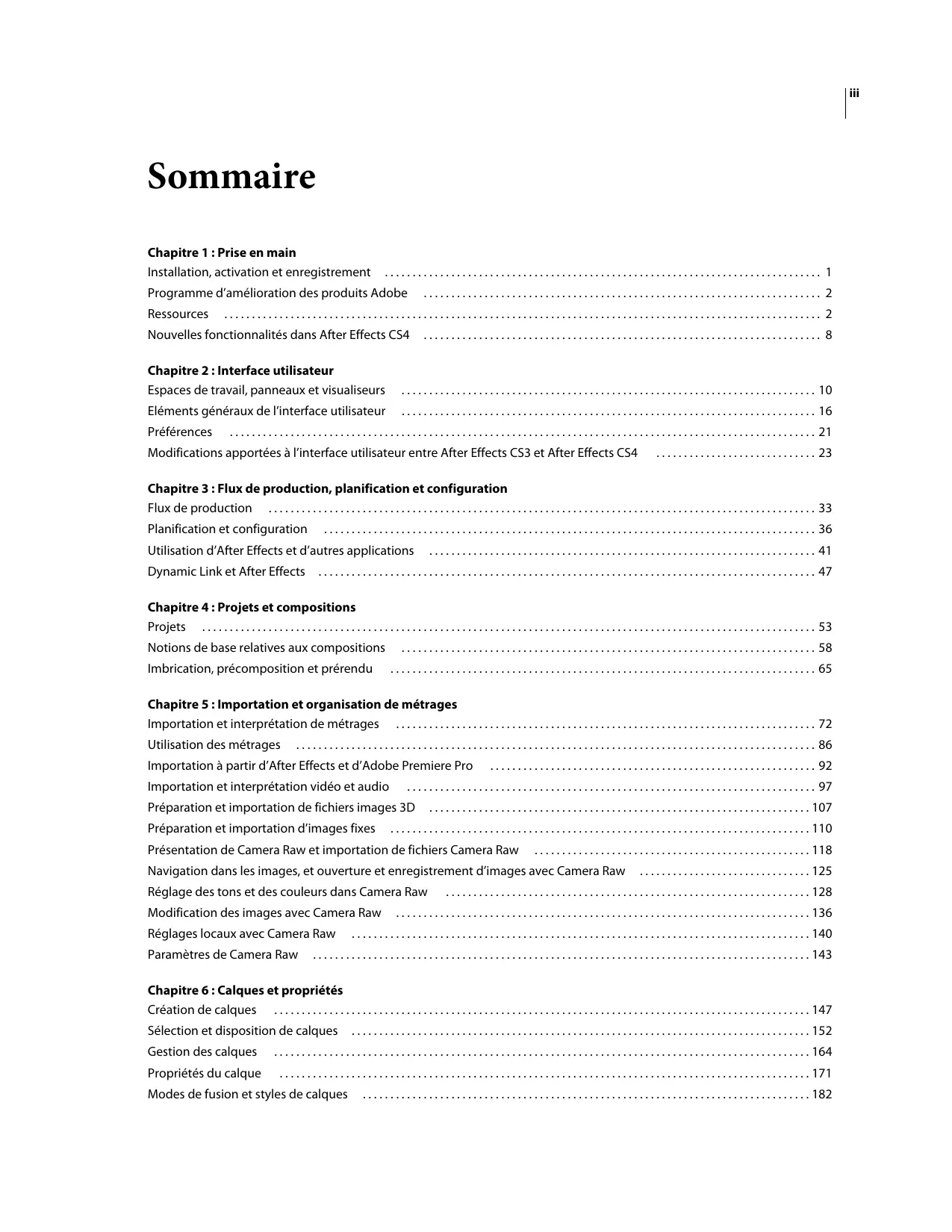 UTILISATION D’AFTER EFFECTS CS4 vi Sommaire Raccourcis : navigation temporelle Raccourcis : prévisualisations Raccourcis : vues