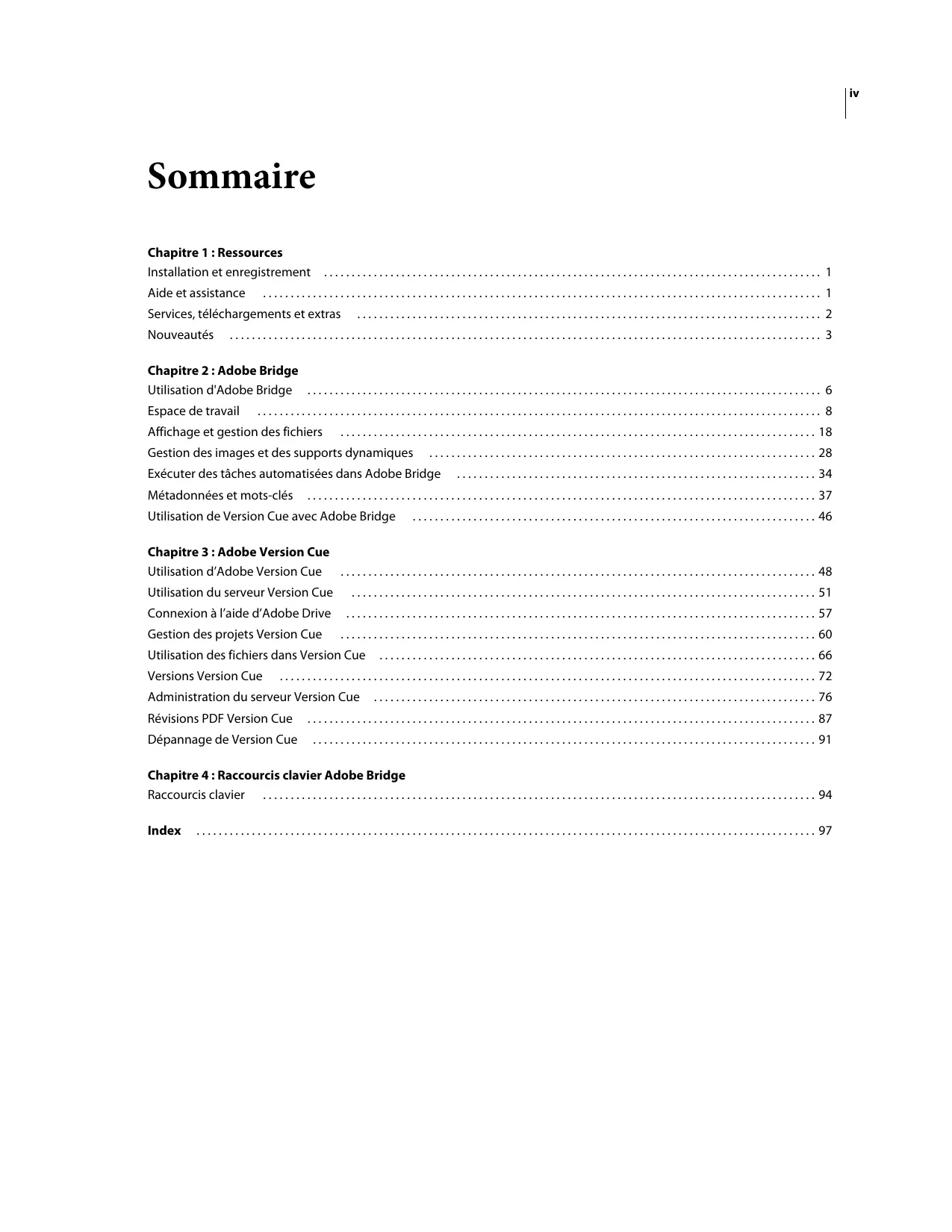 - Forums, contenu Wikipédia et autres ressources de collaboration pour vous aider à interagir avec des développeurs qui partagent vos opinions UTILISATION D'ADOBE® BRIDGE ET D'ADOBE® VERSION CUE CS4 3 Ressources Adobe Labs favorise la mise en place d’un processus de développement de logiciels axé sur la collaboration. Dans cet environnement, les clients deviennent rapidement productifs avec de nouveaux produits et de nouvelles technologies. Adobe Labs comprend également un forum permettant de recueillir les premiers commentaires. L’équipe de développement Adobe s’appuie sur ces commentaires pour créer des logiciels répondant aux besoins et aux attentes de la communauté. Adobe TV Le canal Adobe TV disponible à l’adresse http://tv.adobe.com propose des vidéos permettant de parfaire ses connaissances ou de trouver une source d’inspiration. Divers Le disque d’installation contient plusieurs éléments supplémentaires qui vous aideront à tirer le meilleur parti du logiciel Adobe. Certains extras sont installés sur votre ordinateur au cours du processus d’installation, tandis que d’autres sont disponibles sur le disque. Pour afficher les extras installés avec le logiciel, accédez au dossier de l’application sur votre ordinateur.