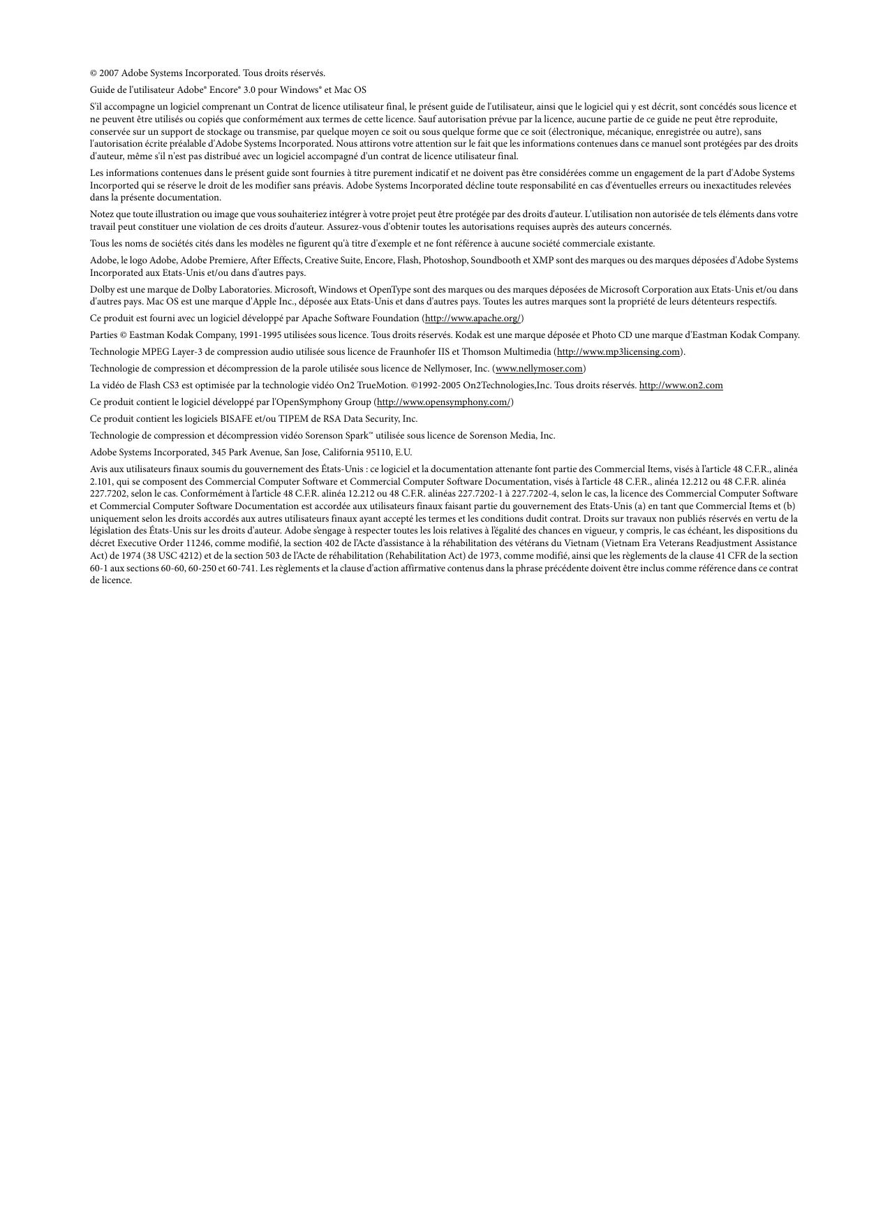| Informations générales | Adobe Encore CS3 fait partie de la suite Adobe Creative Suite 3, nécessite une activation pour l'utilisation complète |