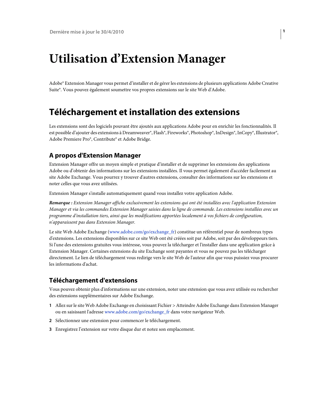 MODE D'EMPLOI EXTENSION MANAGER CS5 ADOBE