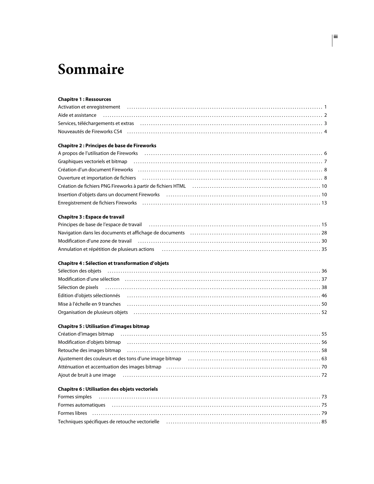 A propos de l’utilisation de Fireworks . . . . . . . . . . . . . . . . . . . . . . . . . . . . . . . . . . . . . . . . . . . . . . . . . . . . . . . . . . . . . . . . . . . . . . . . . . . . . . . . . . 6 Graphiques vectoriels et bitmap
