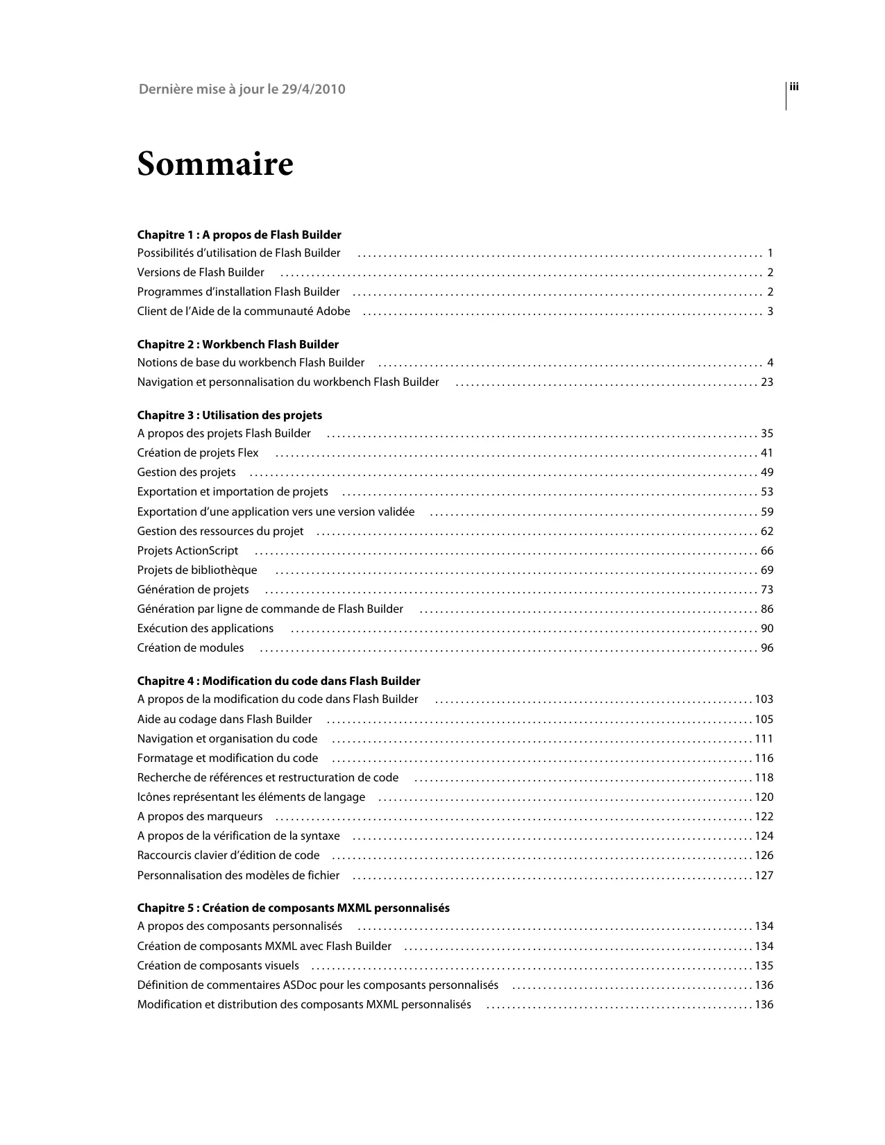 Dernière mise à jour le 29/4/2010 UTILISATION DE FLASH BUILDER 4 iv Sommaire