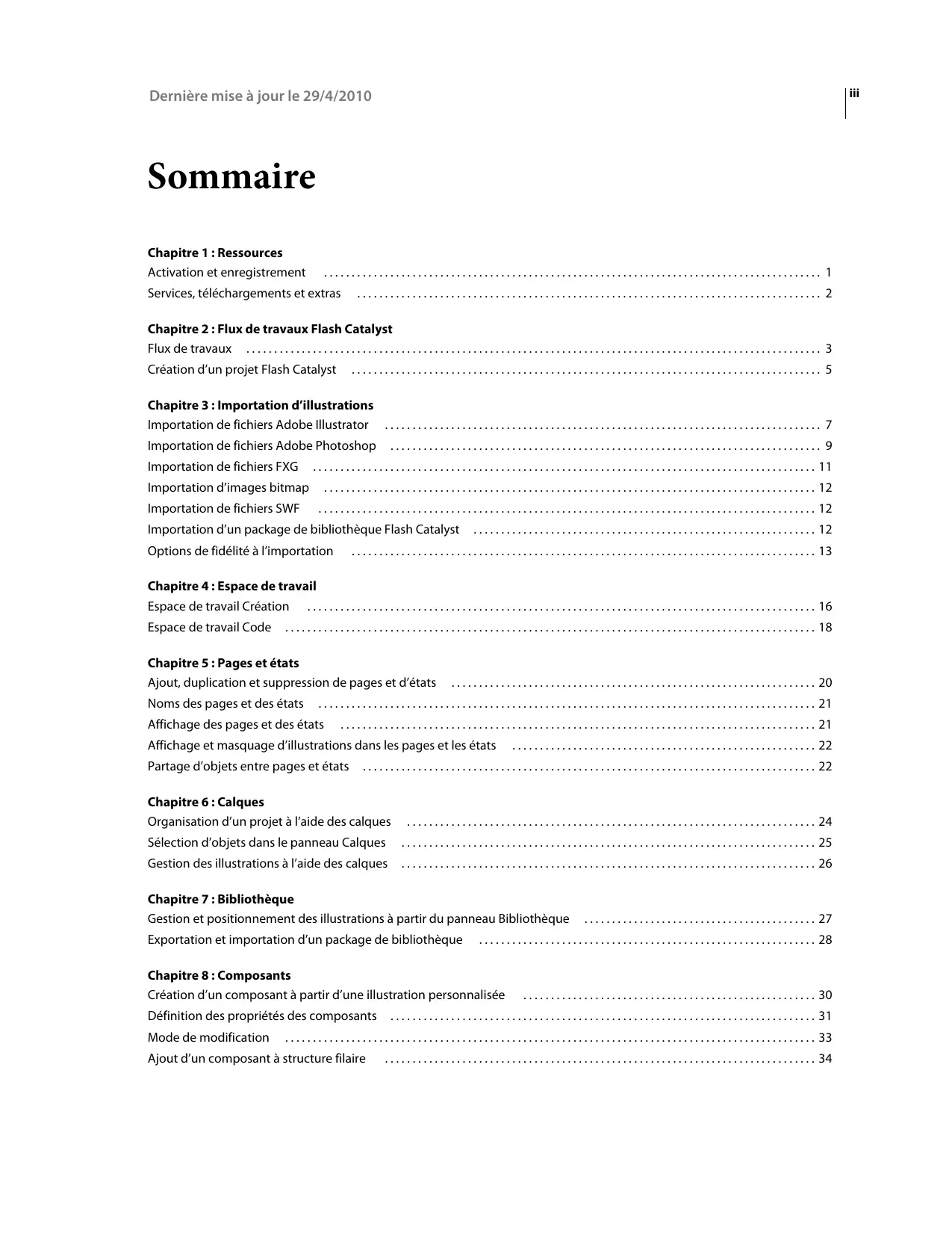 Dernière mise à jour le 29/4/2010 UTILISATION DE FLASH CATALYST CS5 iv Sommaire