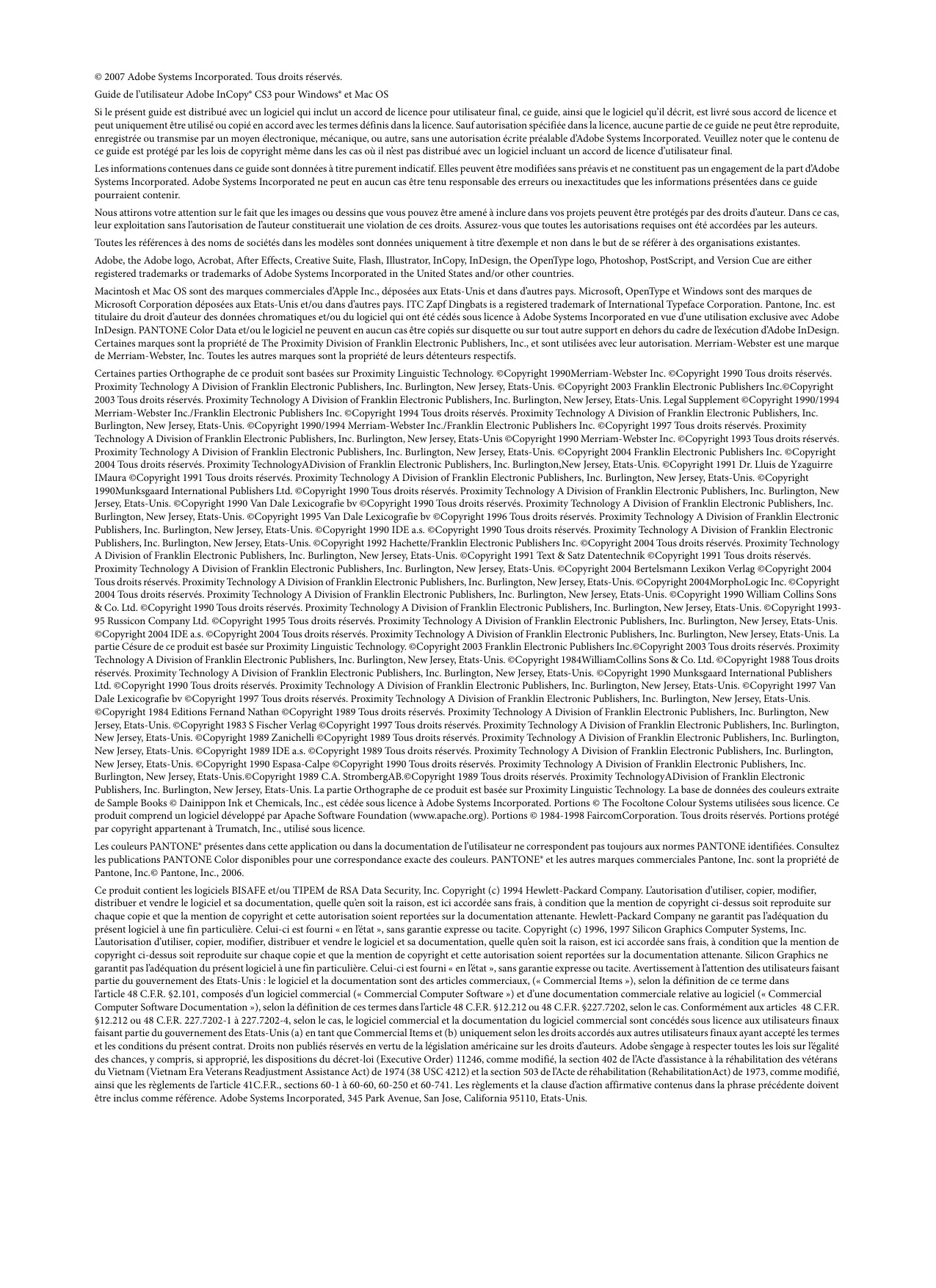 - Installation (dont la désinstallation du logiciel) INCOPY CS3 2 Guide de l'utilisateur