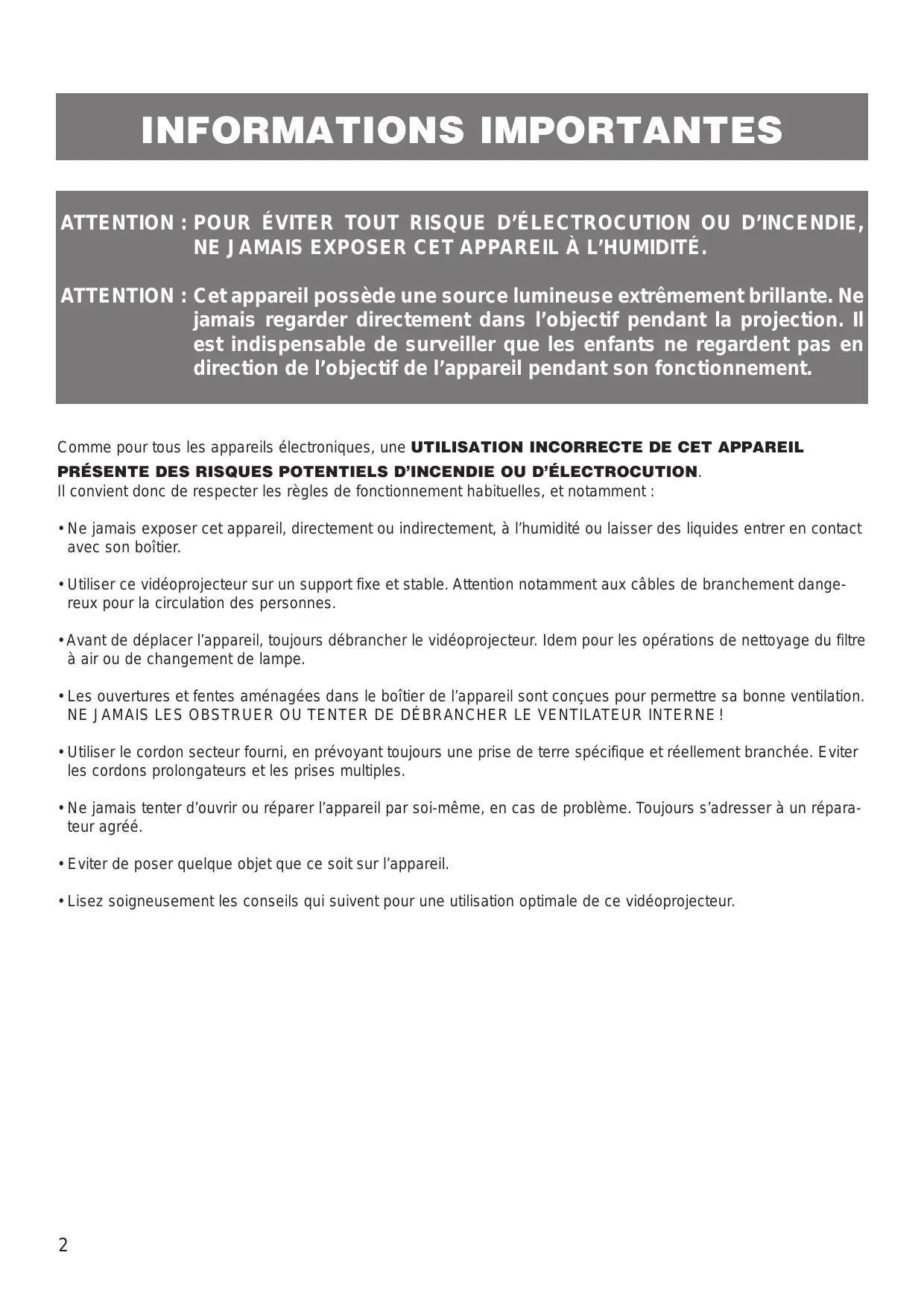 - Lisez soigneusement les conseils qui seront pour une utilisation optimale de ce videoprojecteur.