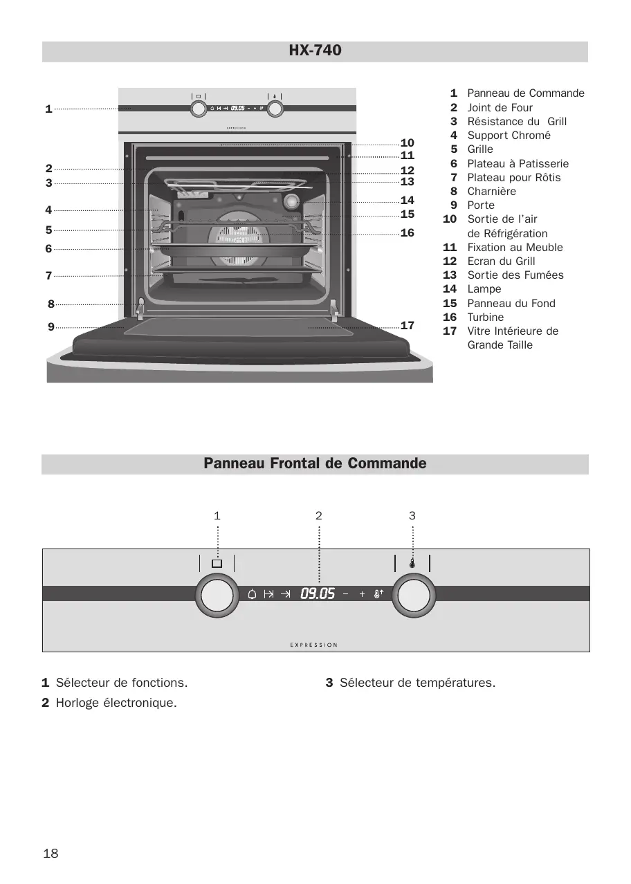 Panneau de Commande Joint de Four Résistance du Grill Support Chromé Grille Plateau à Patisserie Plateau pour Rôtis Charnière Porte Sortie de l’air de Réfrigération Fixation au Meuble Ecran du Grill Sortie des Fumées Lampe Panneau du Fond Turbine Vitre Intérieure de Grande Taille Panneau Frontal de Commande