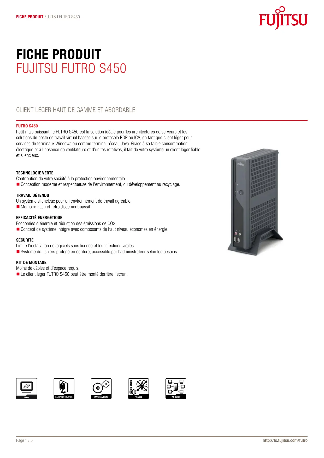 Pour plus de détails sur Fujitsu FUTRO S450, contactez votre ingénieur commercial Fujtsu ou un partenaire certifié, ou visitez notre site web. http://ts.fujitsu.com/futro