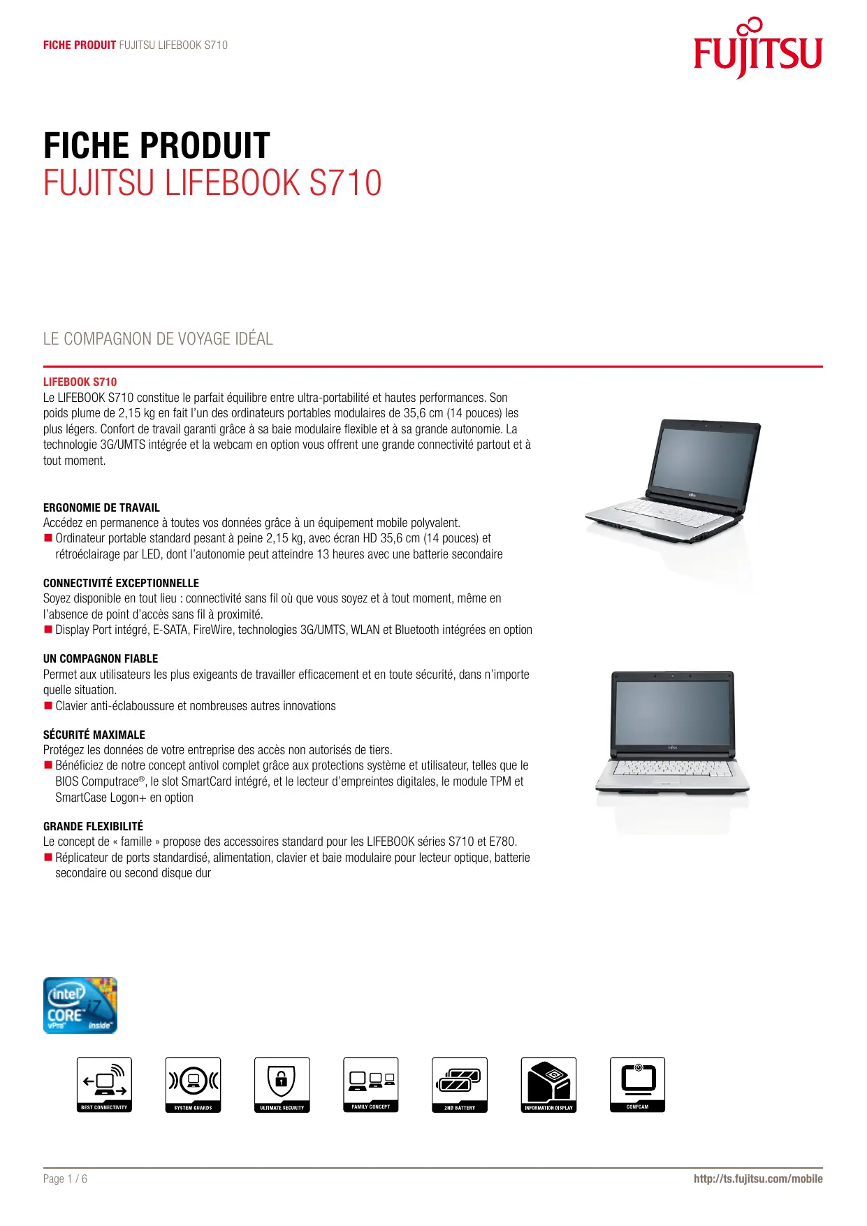 Pour plus de détails sur Fujitsu LIFEBOOK S710, contactez votre ingénieur commercial Fujtsu ou un partenaire certifié, ou visitez notre site web. http://ts.fujitsu.com/mobile