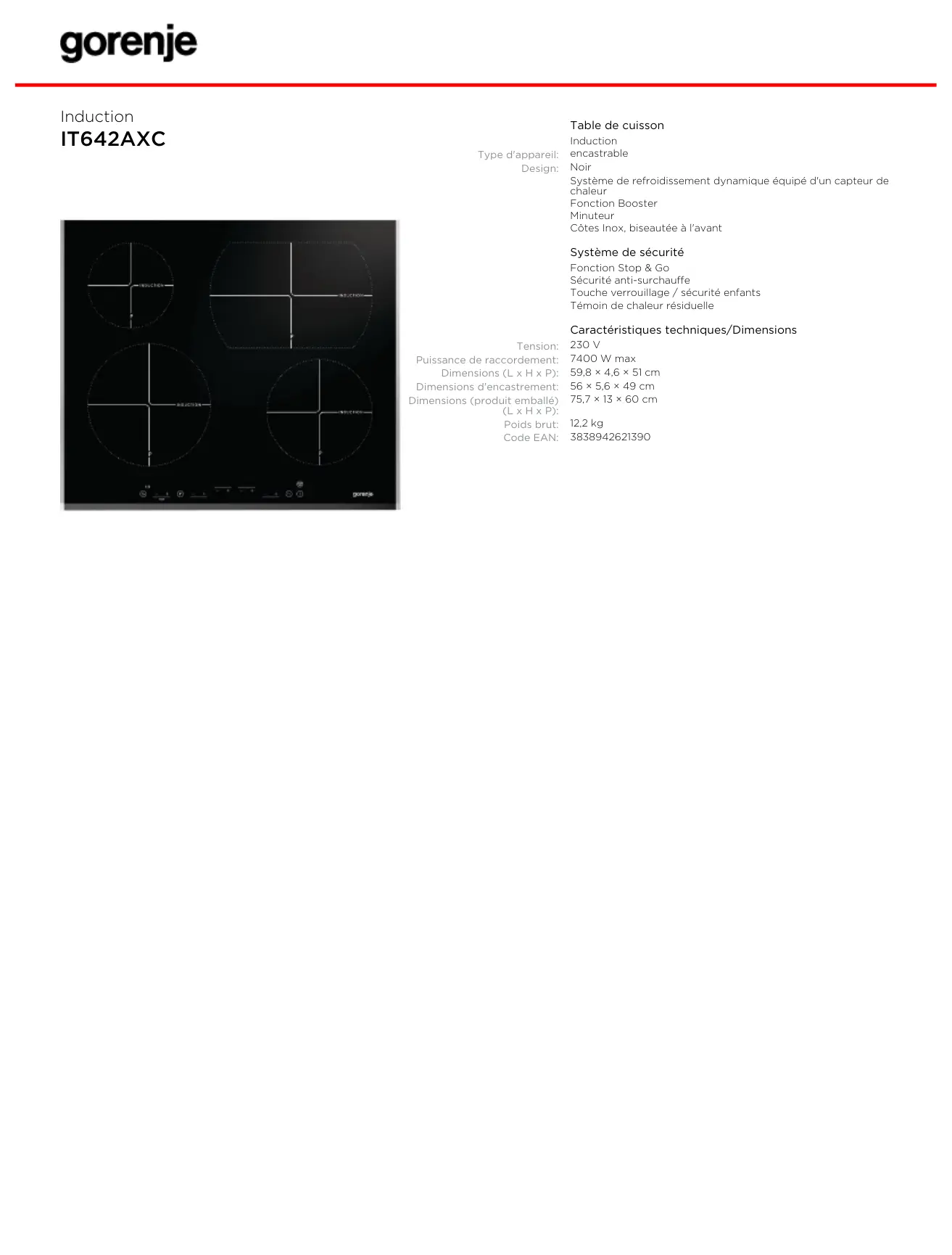 IT642AXC - Plaque de cuisson GORENJE - Notice d'utilisation et mode d'emploi gratuit