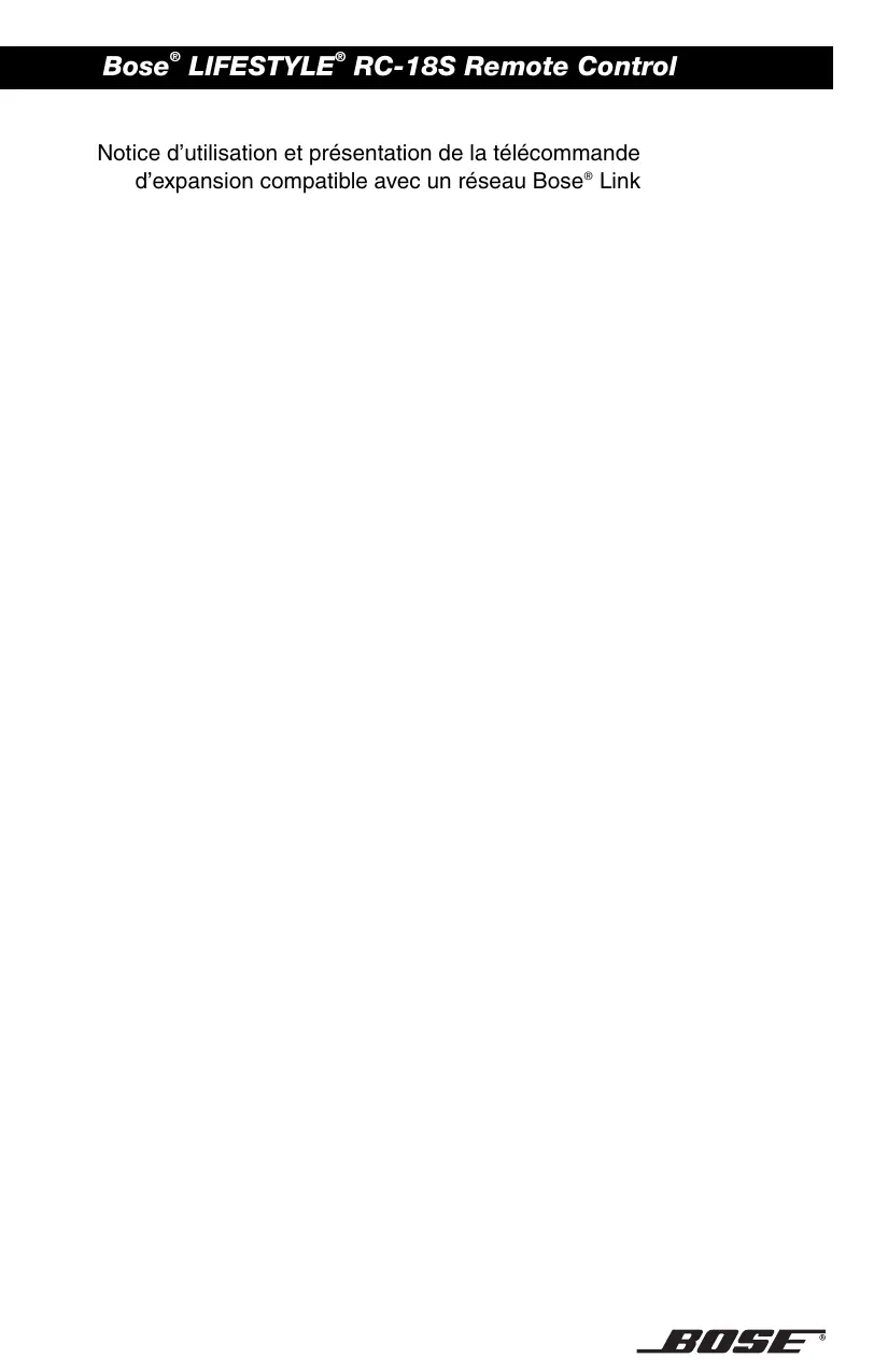 Bose LIFESTYLE RC-18S Remote Control Notice d’utilisation et présentation de la télécommande d’expansion compatible avec un réseau Bose® Link