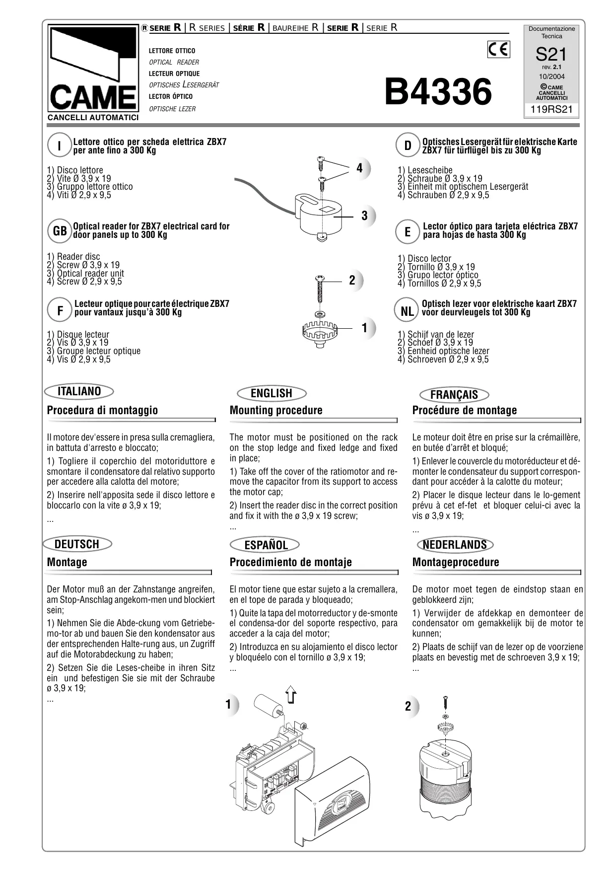 Retrouvez gratuitement la notice de l'appareil B4336 CAME au format PDF.