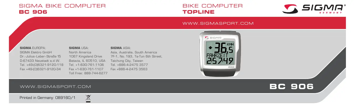 BC 906 - Compteur de vélo SIGMA - Notice d'utilisation et mode d'emploi gratuit