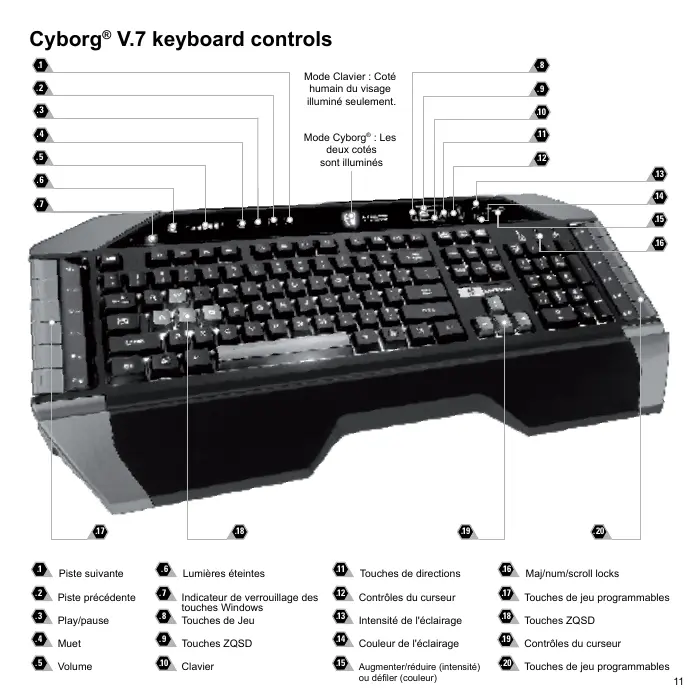 Cyborg® V.7 clavier Félicitation pour votre achat du Cyborg® V.7 Keybord.Bien qu’étant un outil de bureautique hautement performant, le Cyborg® keyboard est spécialement conçu pour le jeu et intègre les caractéristiques suivantes :