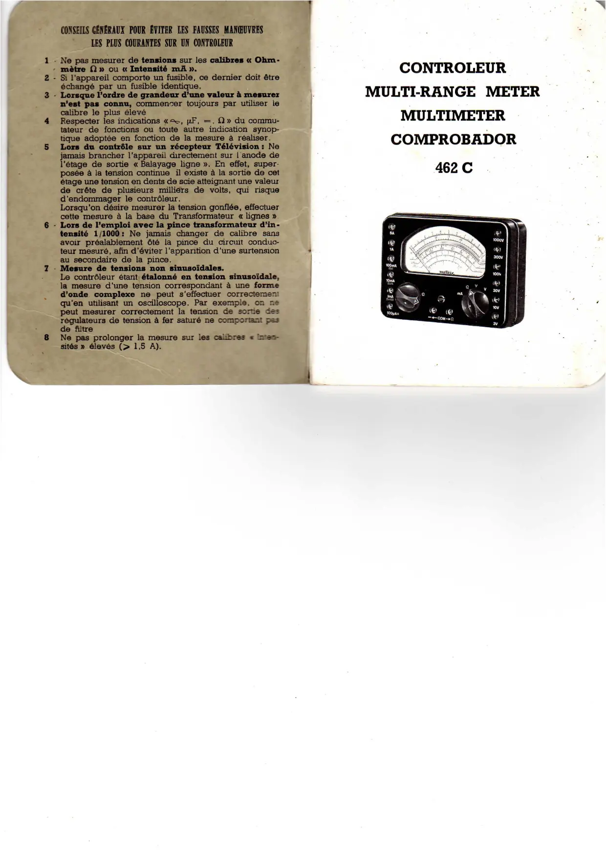 Compte tenu du grand cadran et des nombreux calibres dont il est dote, le contrôleur 462 C a ete realised dans un encombrementvriment minimum,ce qui permet de le transporter facilement.