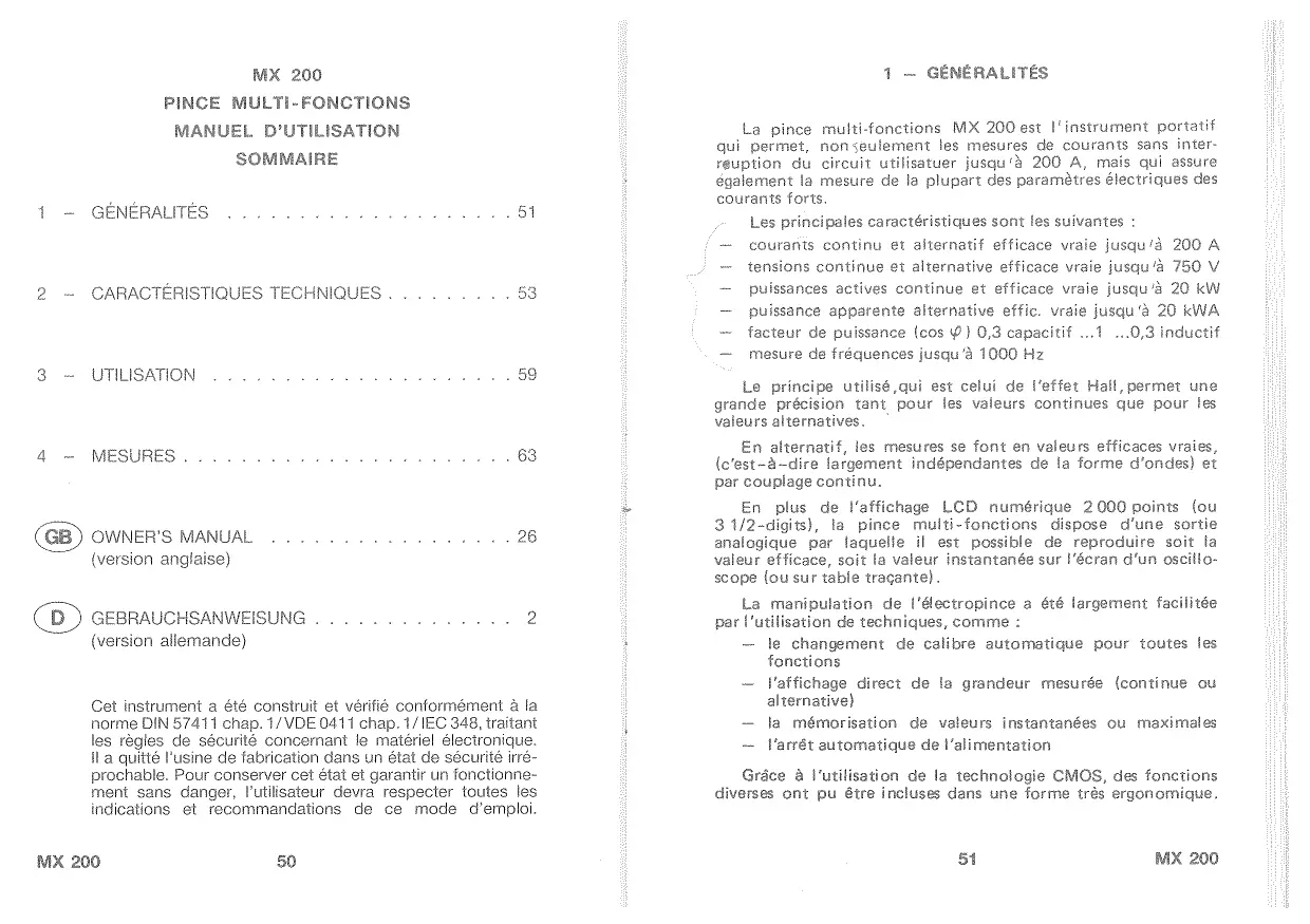 Retrouvez gratuitement la notice de l'appareil MX 200 METRIX au format PDF.