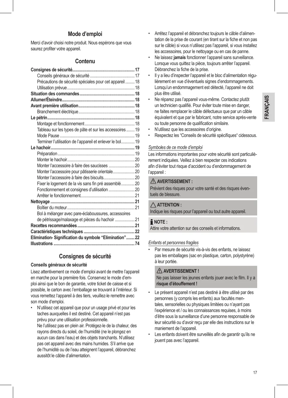 - Mode d’emploi Merci d’avoir choisi notre produit. Nous espérons que vous saurez profiter votre appareil. Contenu Consignes de sécurité p. 17
