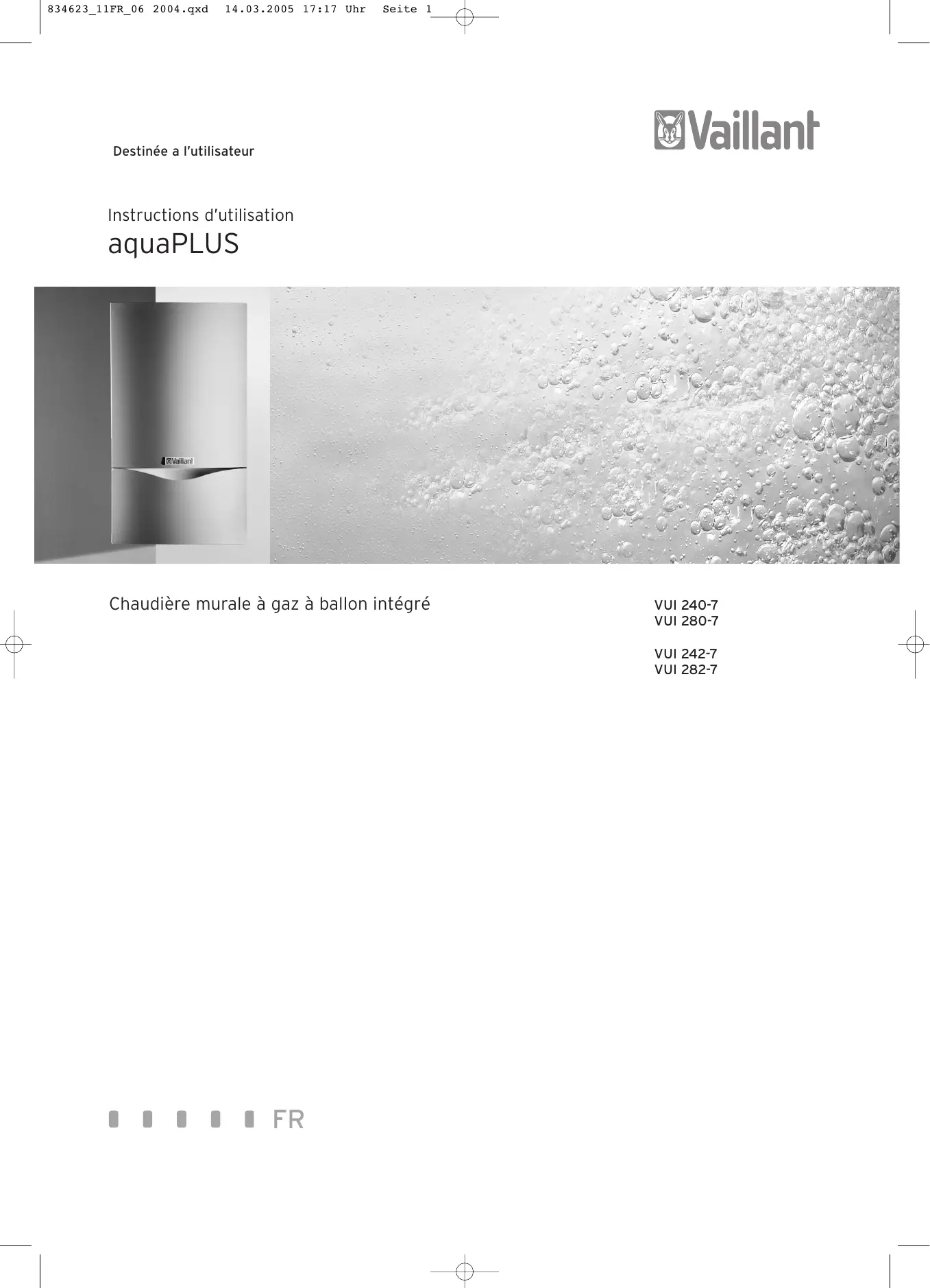 Seite 1 Destinée a l’utilisateur Instructions d’utilisation aquaPLUS Chaudière murale à gaz à ballon intégré VUI 240-7 VUI 280-7 VUI 242-7 VUI 282-7