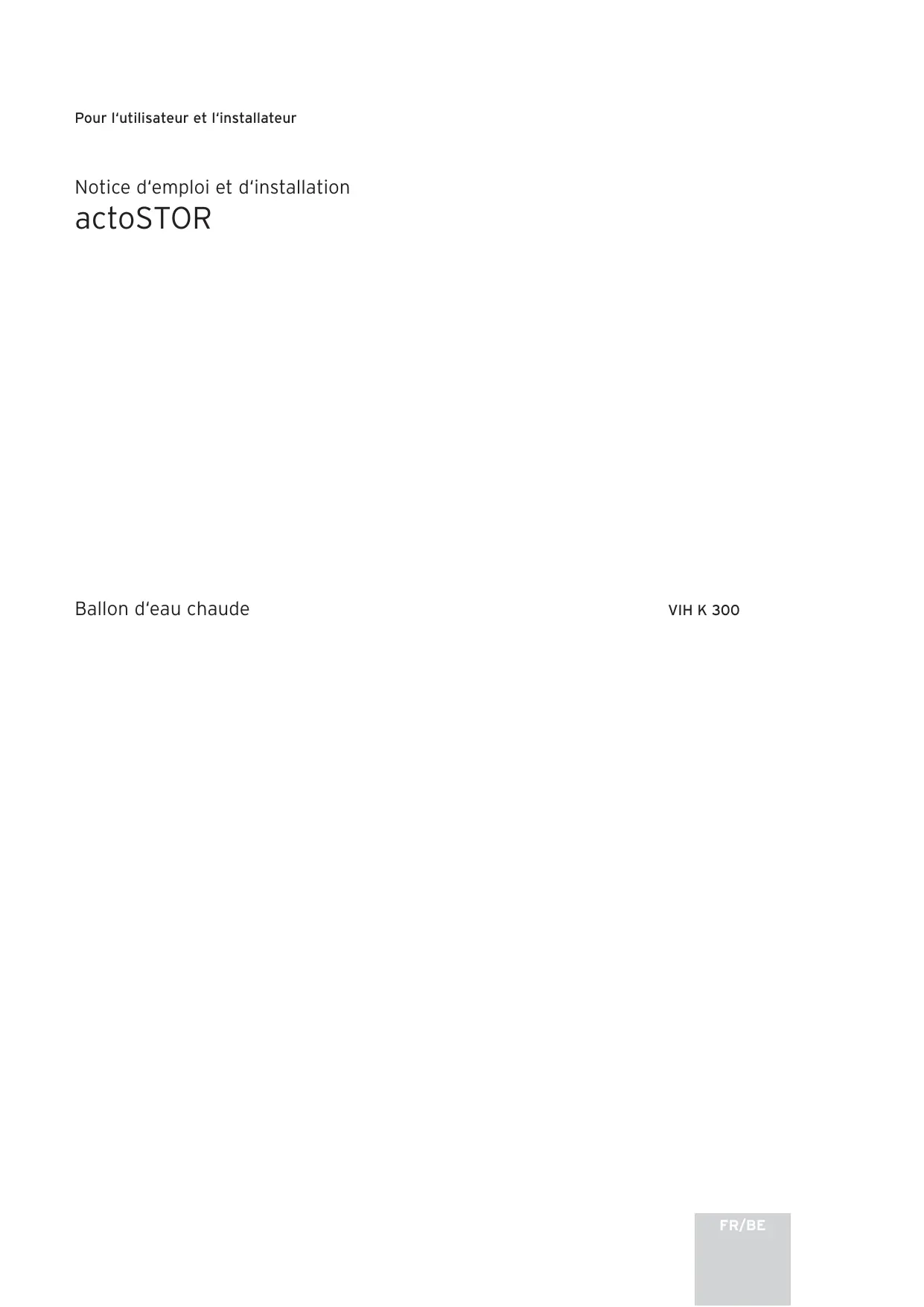 actoSTOR VIH K 300 BE; DE/AT/BE; DK; FR/BE; GUS; HR; IT; PL; SI; TR Pour l‘utilisateur et l‘installateur Notice d‘emploi et d‘installation actoSTOR Ballon d‘eau chaude VIH K 300 FR/BE Table des matières - Remarques relatives à la documentation 1 Description de l‘appareil Table des matières Remarques relatives à la documentation ... Symboles utilisés ...
