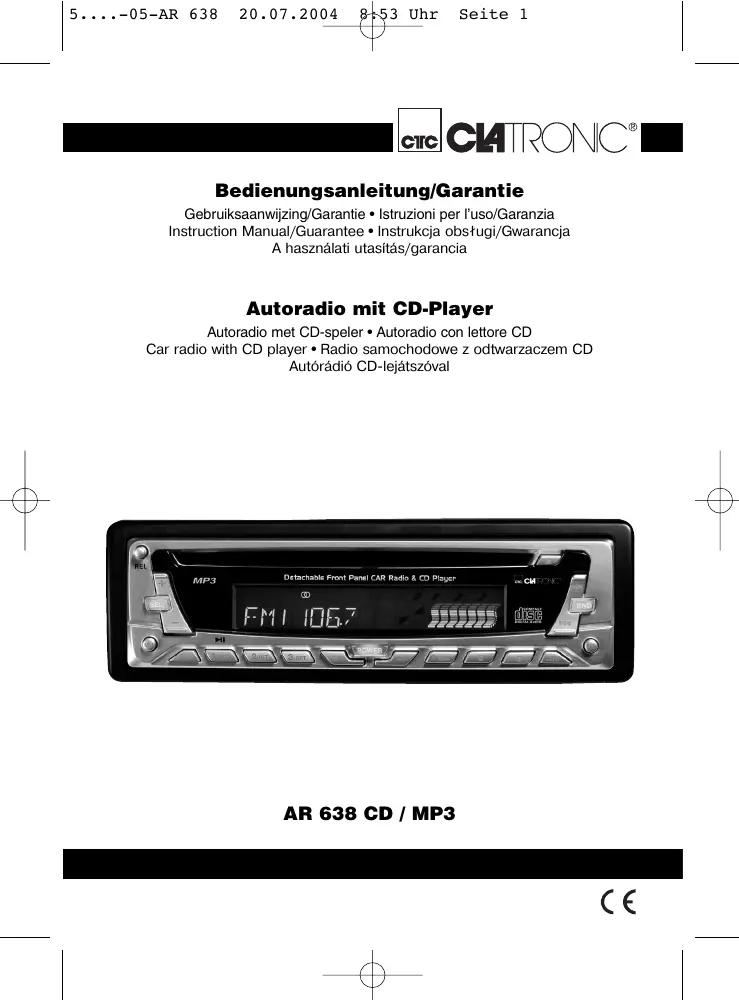 Retrouvez gratuitement la notice de l'appareil AR 638 CLATRONIC au format PDF.