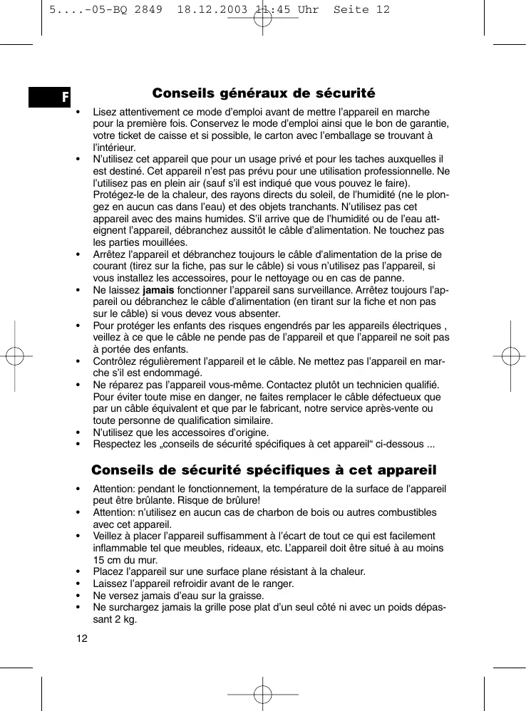 BQ 2849 - Gril électrique CLATRONIC - Notice d'utilisation et mode d'emploi gratuit