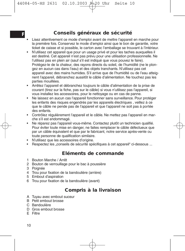 HS 2631 - Aspirateur CLATRONIC - Notice d'utilisation et mode d'emploi gratuit