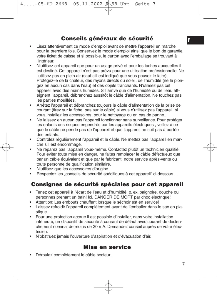 HT 2668 - Sèche cheveux CLATRONIC - Notice d'utilisation et mode d'emploi gratuit