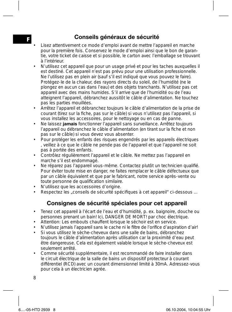 Retrouvez gratuitement la notice de l'appareil HTD 2939 CLATRONIC au format PDF.