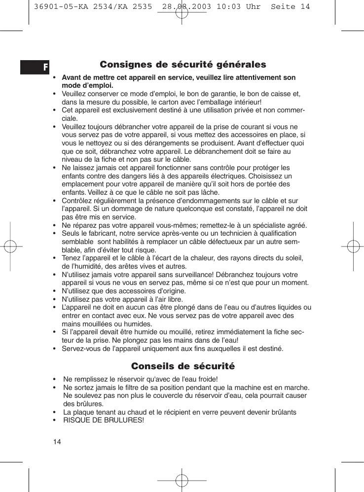 Retrouvez gratuitement la notice de l'appareil KA 2534 - OTHER MANUAL CLATRONIC au format PDF.