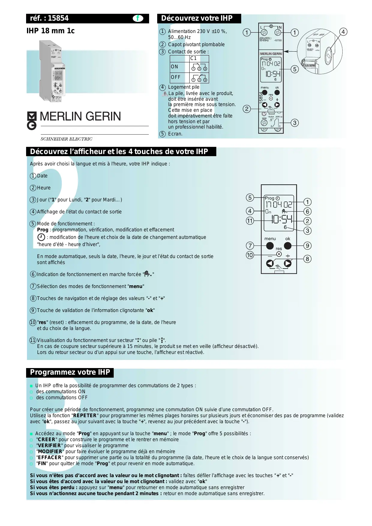 IHP 18 MM 1C - Programmateur horaire électrique MERLIN GERIN - Notice d'utilisation et mode d'emploi gratuit