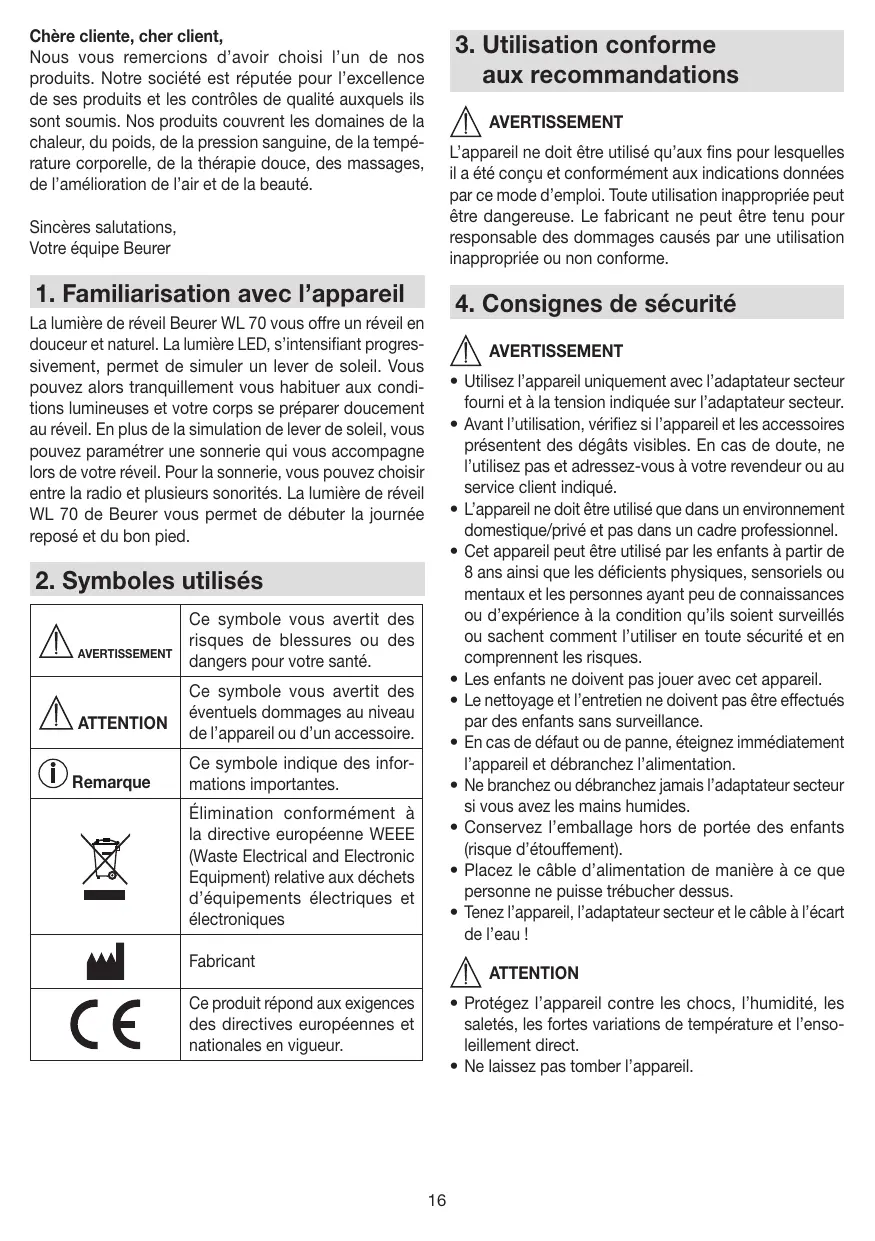 MODE D'EMPLOI WL 70 BEURER