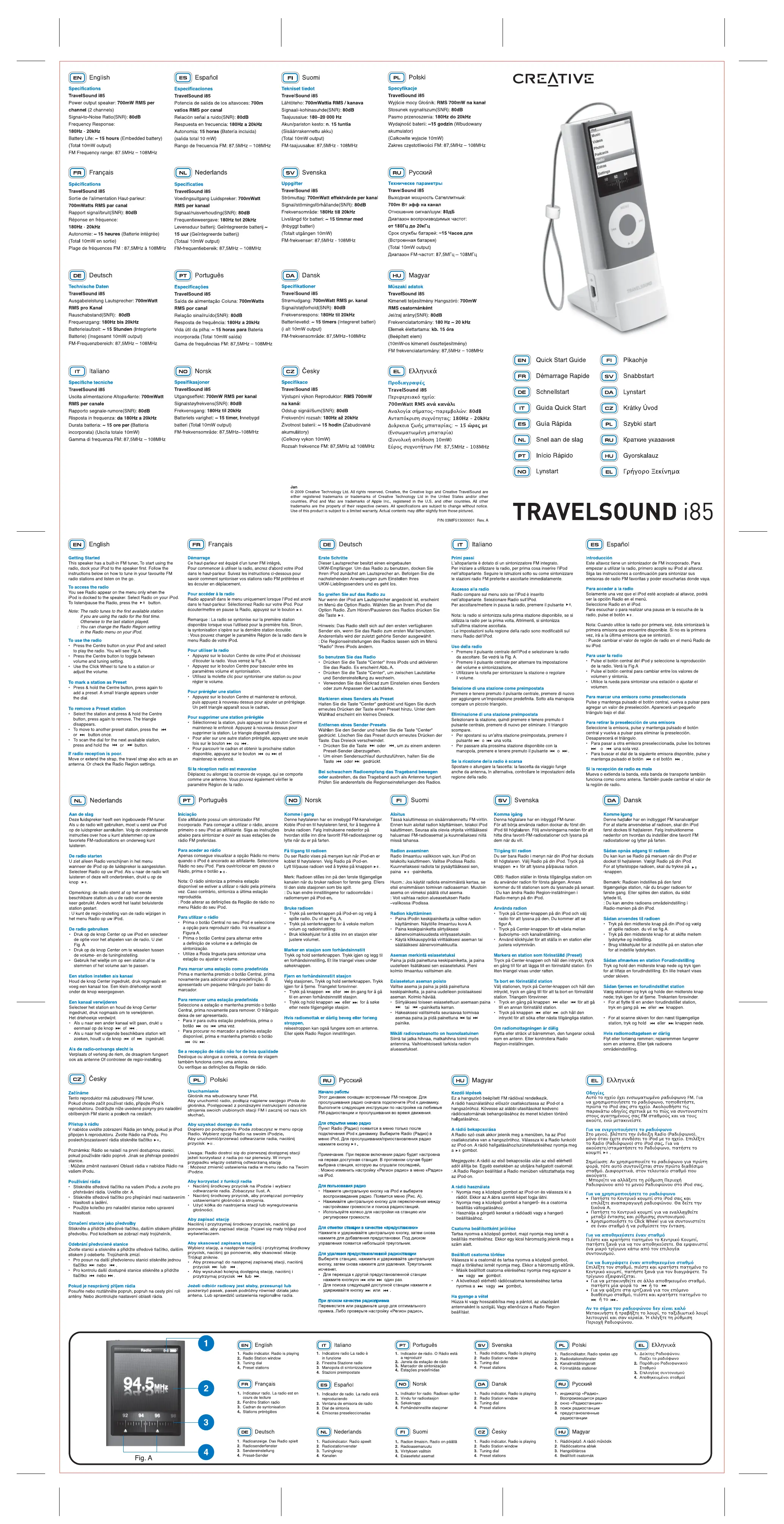 Retrouvez gratuitement la notice de l'appareil TRAVELSOUND I85 CREATIVE au format PDF.