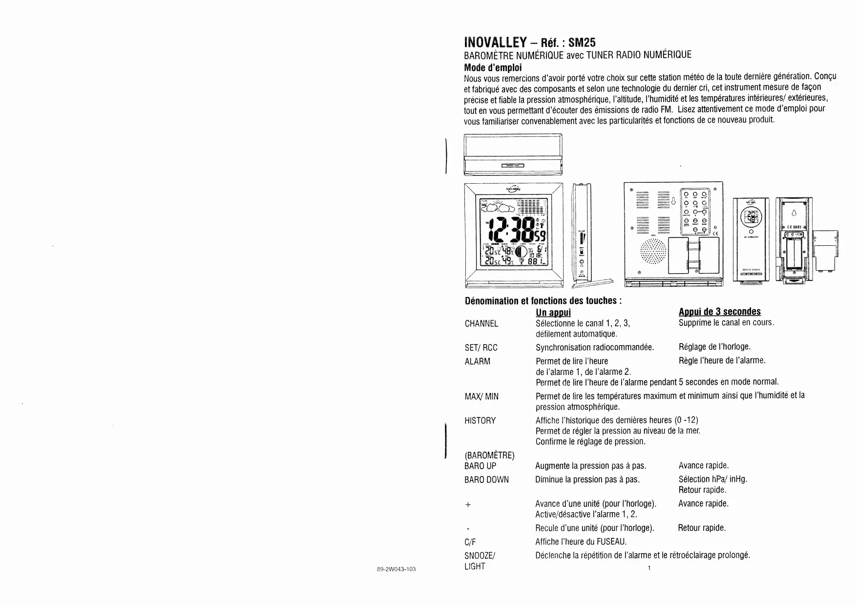 STATION METEO - Station météo numérique INOVALLEY - Notice d'utilisation et mode d'emploi gratuit