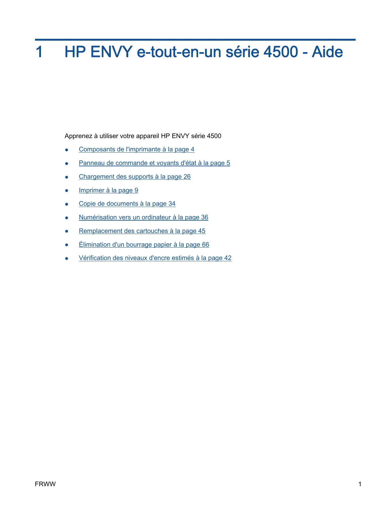 1 HP ENVY e-tout-en-un série 4500 - Aide 2 Apprenez à utiliser l'appareil HP ENVY série 4500