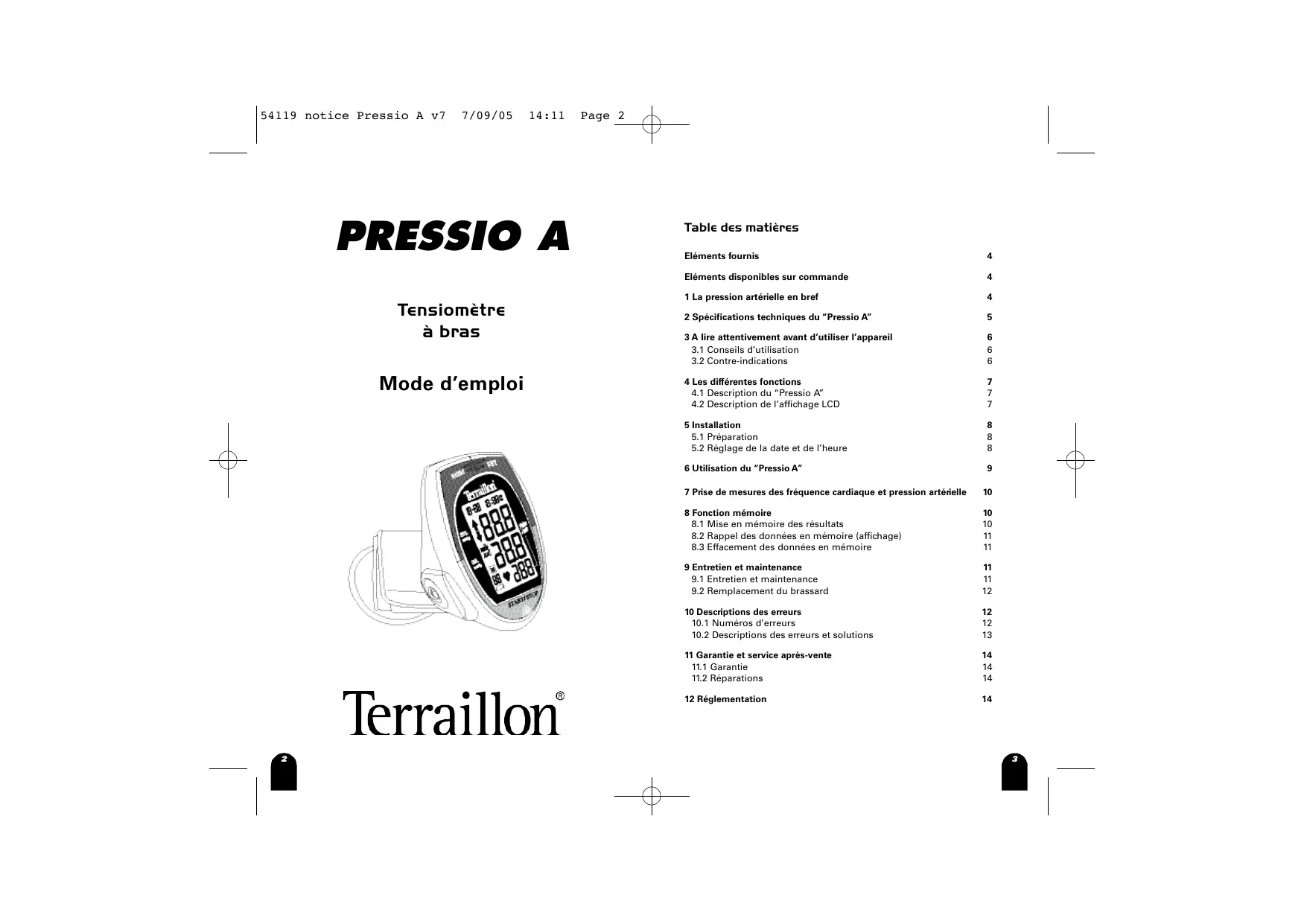 PRESSIO A - Tensiomètre TERRAILLON - Notice d'utilisation et mode d'emploi gratuit