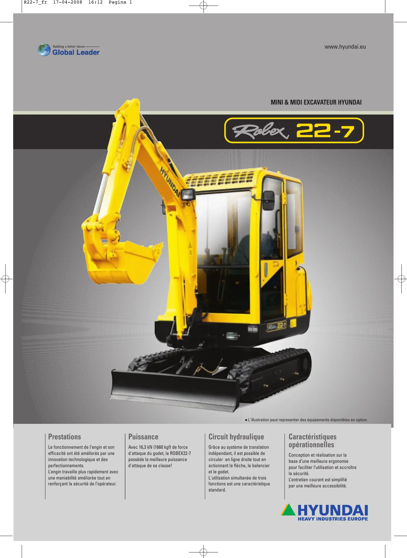 L'equipement standard et optionnel peut varier. Consultez Your distributeur Hyundai pour de plus amples informations. L'engin illustrer pot varier suivant les normes internationales. Toutes les mesures americaines arrondies à la livre ou au ponce le plus proche. Les specifications peuvent faire l'objet de modifications sans préavis.