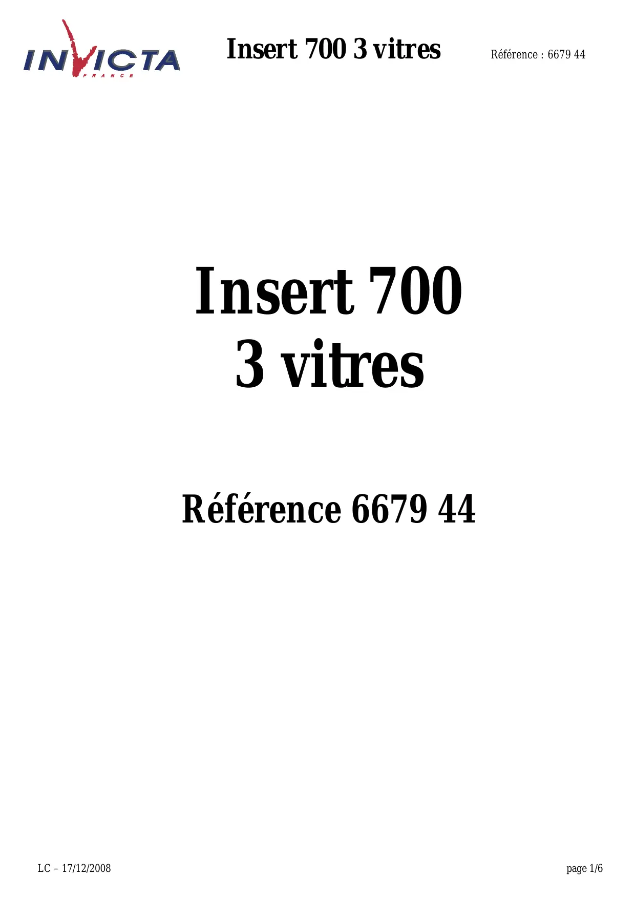 Retrouvez gratuitement la notice de l'appareil INSERT 700 3 VITRES INVICTA au format PDF.