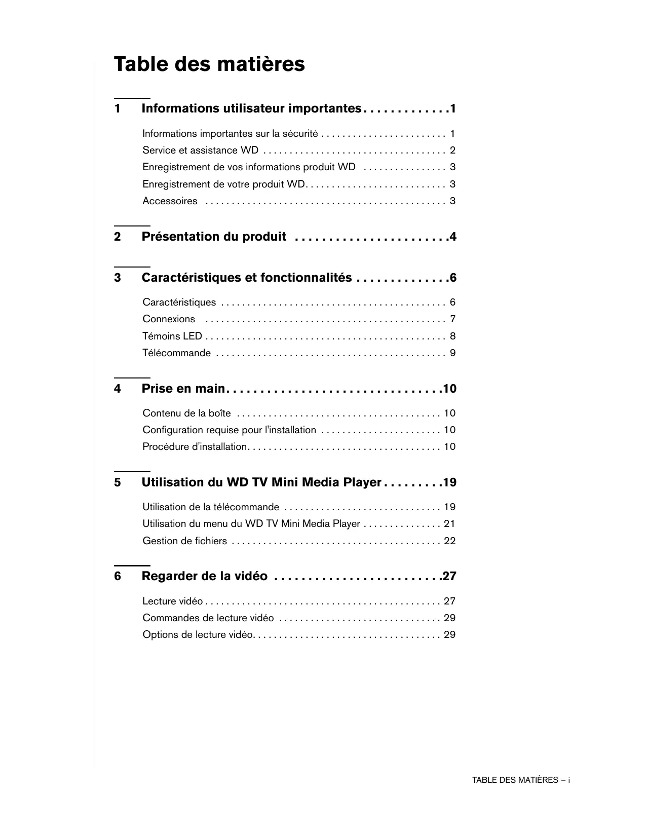 - Utilisation du WD TV Mini Media Player p. 19