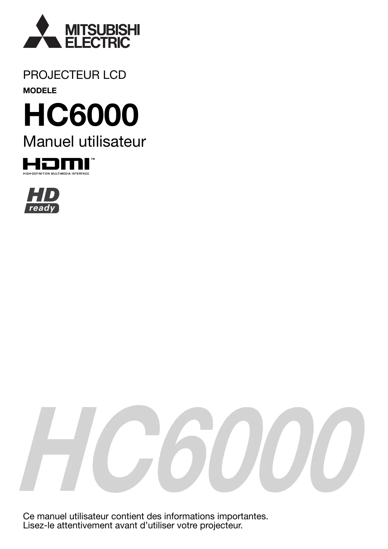 Téléchargez la notice de votre Projecteur au format PDF gratuitement ! Retrouvez votre notice HC6000 - MITSUBISHI et reprennez votre appareil électronique en main. Sur cette page sont publiés tous les documents nécessaires à l'utilisation de votre appareil HC6000 de la marque MITSUBISHI.