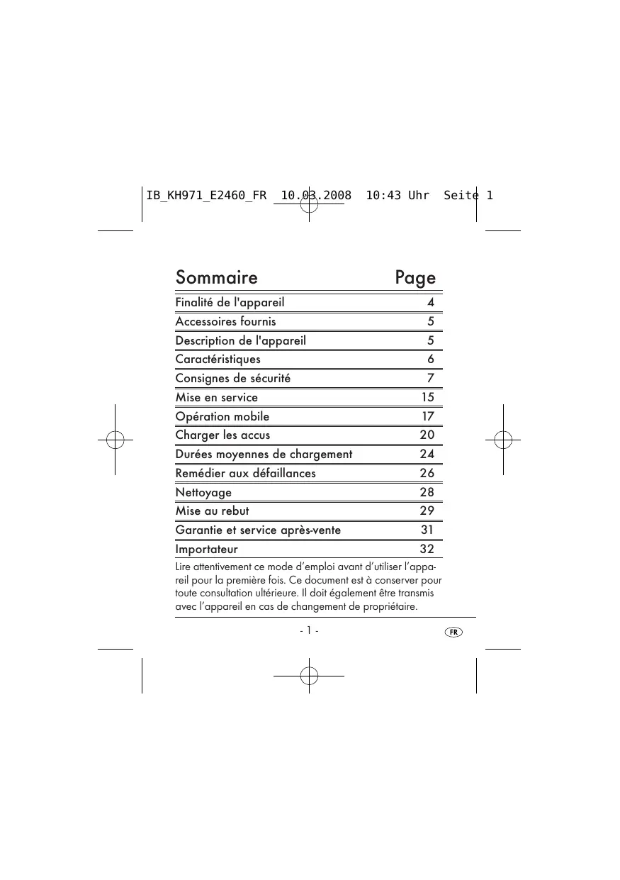 Retrouvez gratuitement la notice de l'appareil KH 971 RAPID BATTERY CHARGER TRONIC au format PDF.