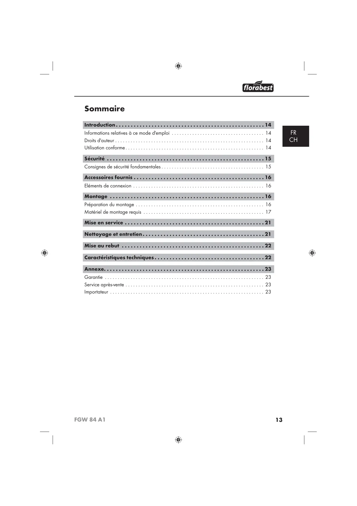 FGW 84 A1 Mise en service/Nettoyage et entretien Mise en service REMARQUE