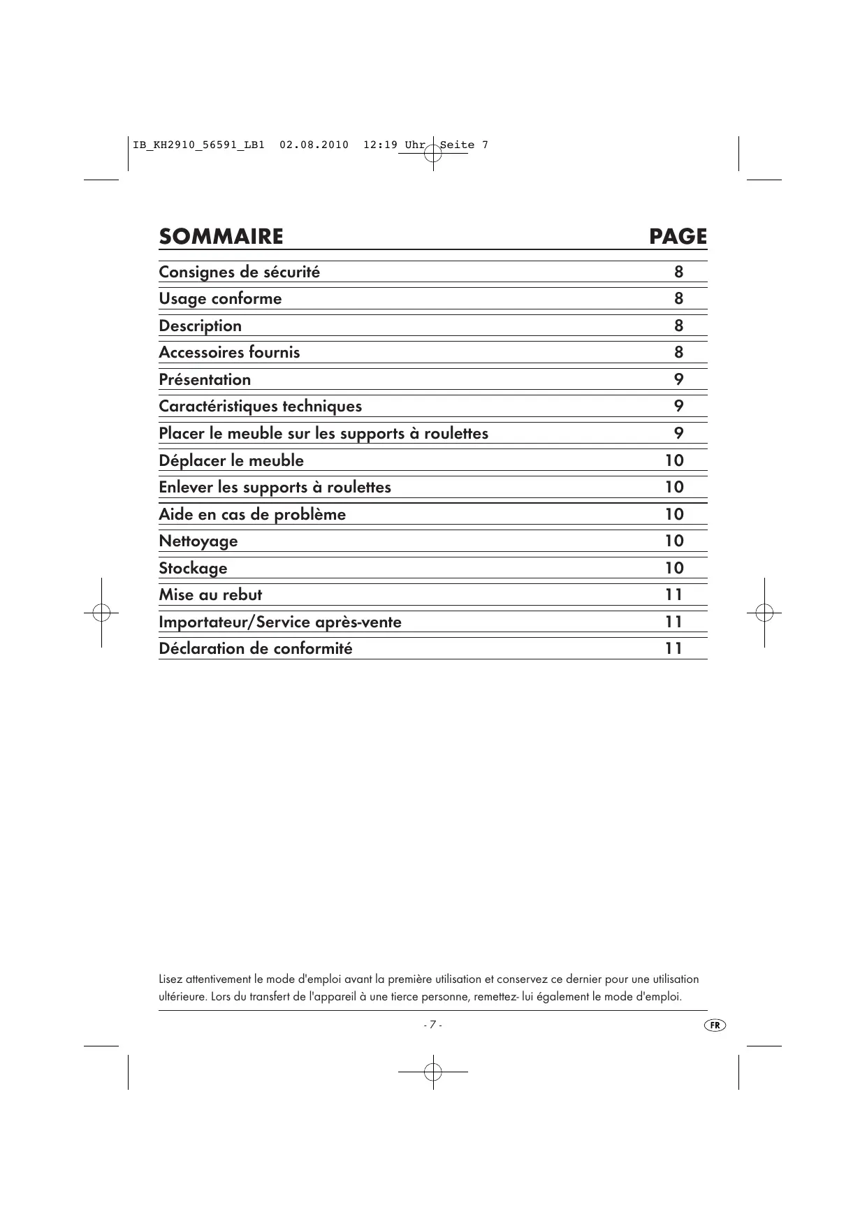 KH 2910 - Set de transport de meubles POWERFIX - Notice d'utilisation et mode d'emploi gratuit
